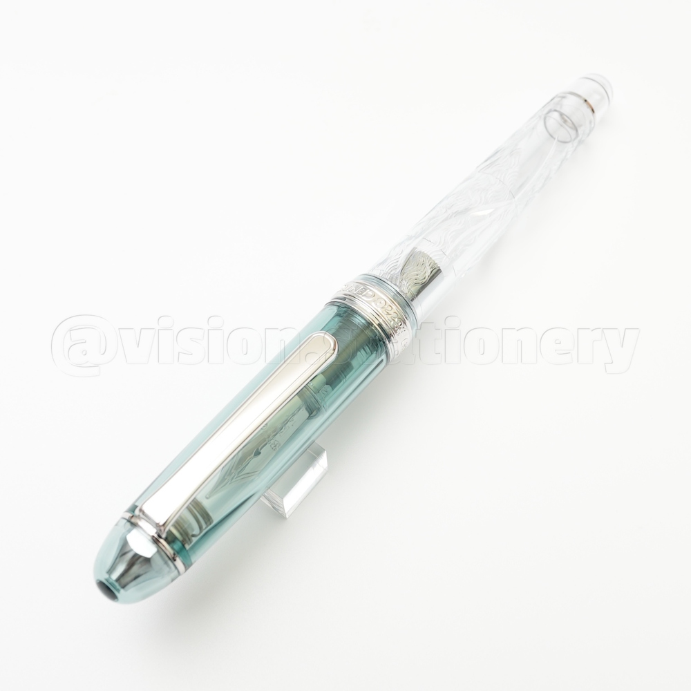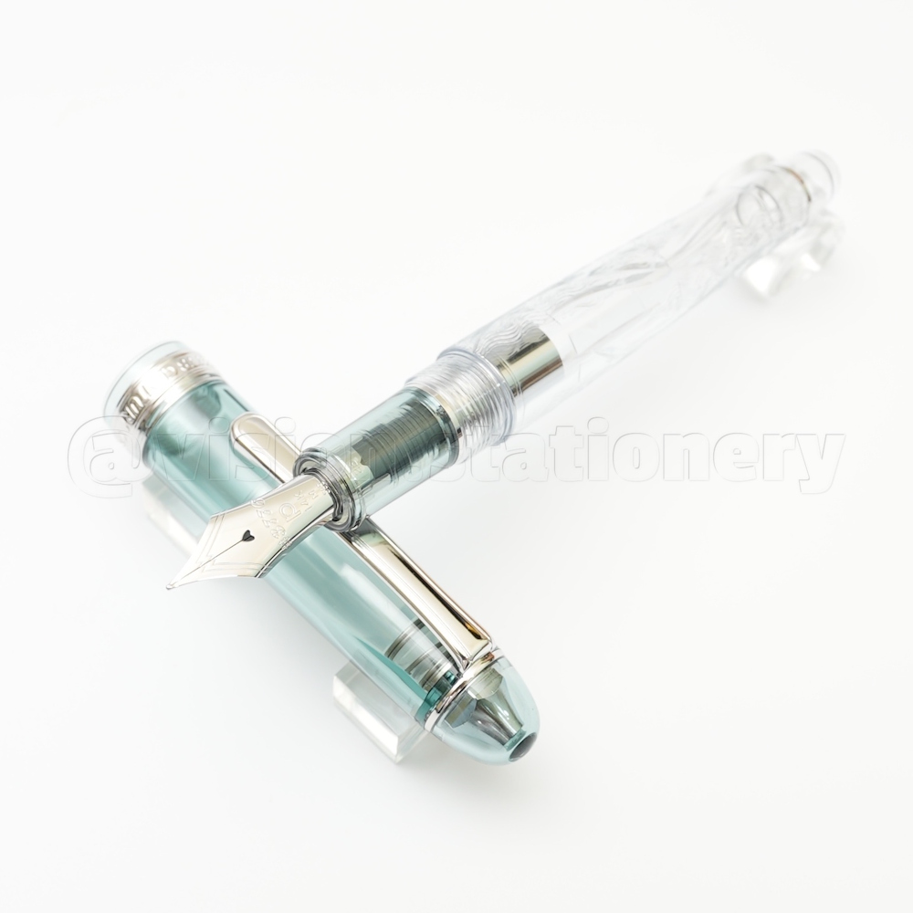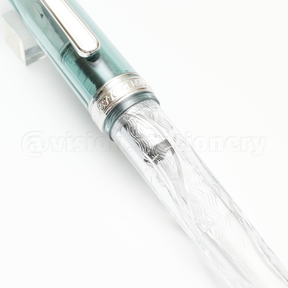 ▲ 透明筆身上以兩種雕刻方式呈現出豐富的絹雲。