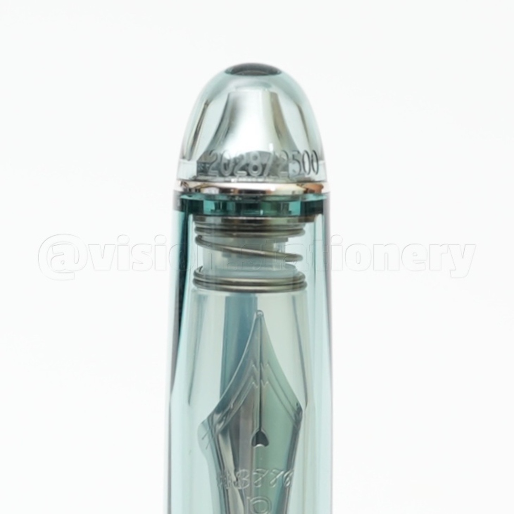▲ 透明中略帶灰霧感的淡藍綠色筆蓋, 維持了雙色設計的風格,連握為部份也一樣考慮進去了。