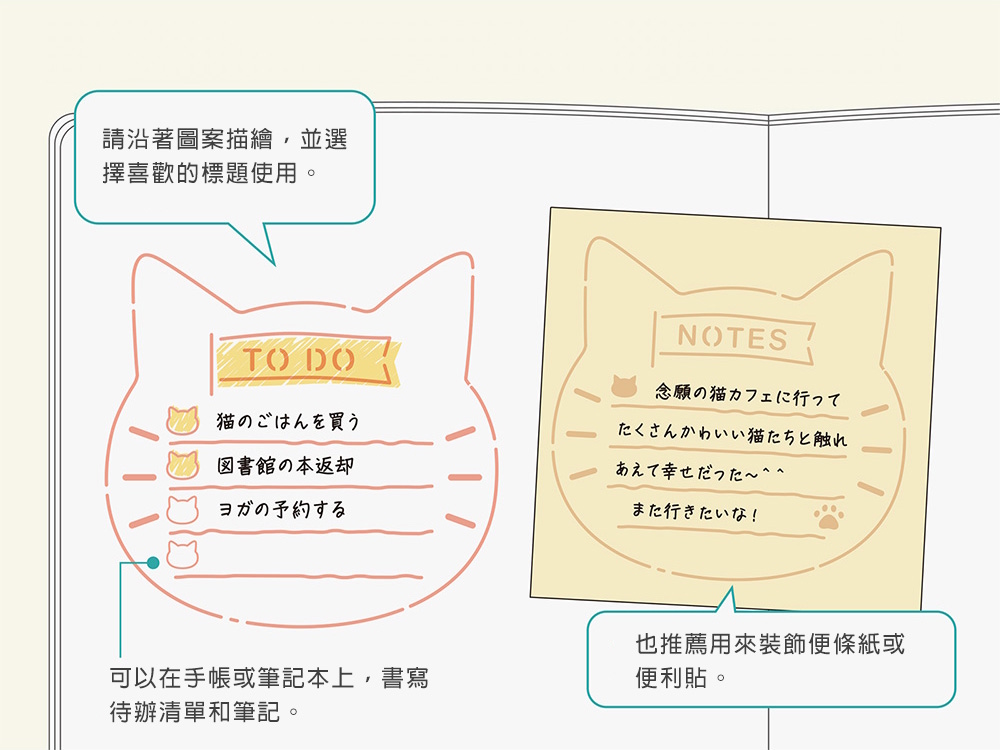 ▲ 譬如這是貓咪的外型,其內容則大致以 TO DO 為精神,配合上許多的小圖案。